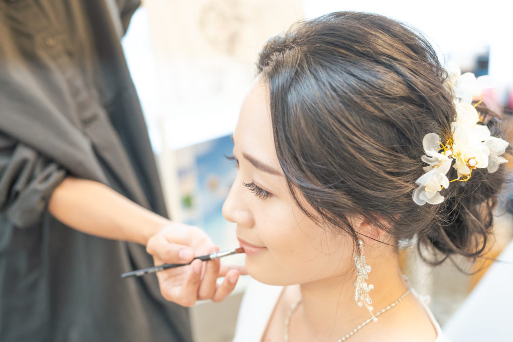 事前にお送りしているヘアメイクのアンケートを参考に新婦様のお支度を行います。