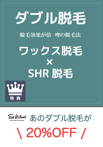 時間をかけずに脱毛したい方にはワックス脱毛を、少しお時間をかけて脱毛をしたい方にはSHR脱毛を。ついでだから気になる所を全て脱毛したい方にはダブル脱毛を!