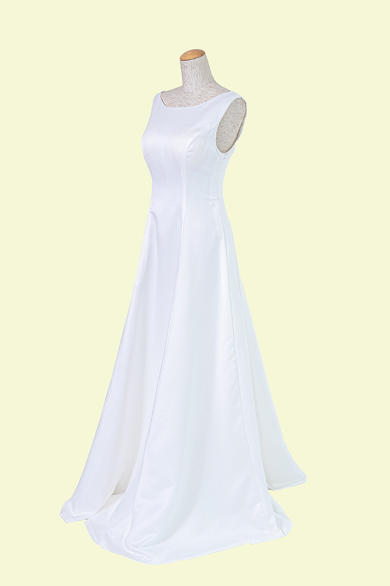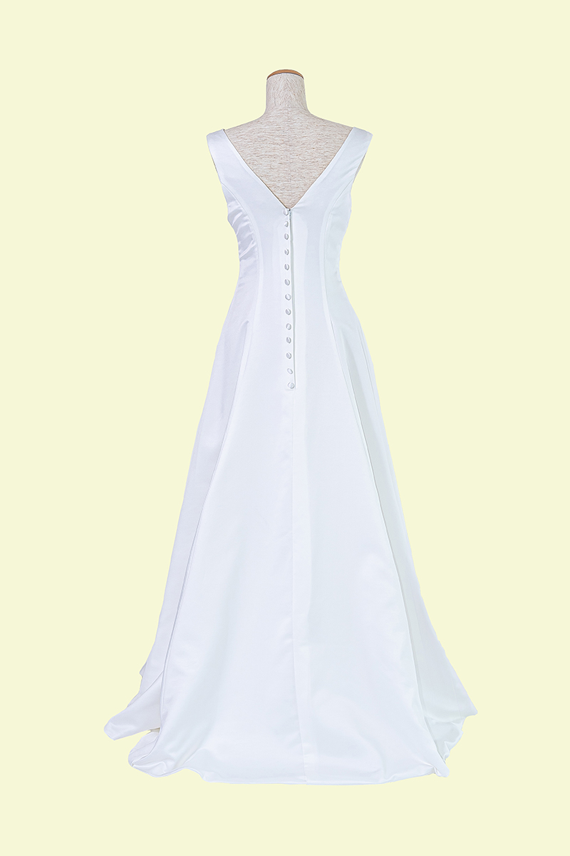 シンプルでありながらバックスタイルはVカットになっておりインパクトがあります。デコルテも綺麗に見え、くびれもはっきりとする本格ドレス。ドレスの重量も軽くロケなどにもおすすめです。