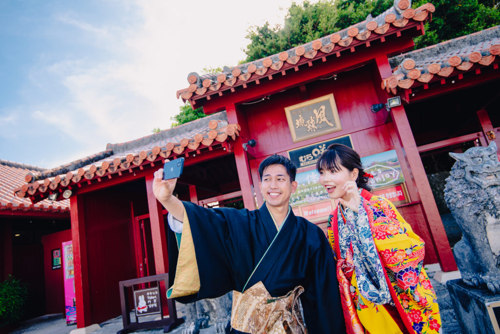 自撮り風ショットは琉球王朝時代と現代が組み合わさり楽しいお写真になります。