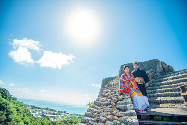 沖縄の伝統衣装、琉装でのロケーション撮影プラン カップル、友達とのグループフォトにおすすめです。 しっかり着こなしから、お洒落に着崩しまで。あなたスタイルで。記念日や節目にいかがでしょうか。