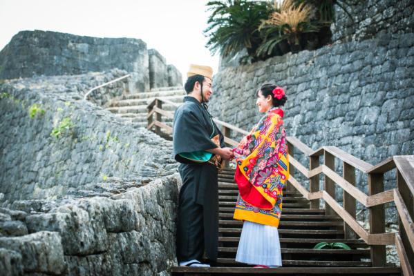 沖縄の伝統衣装、琉装でのロケーション撮影プラン カップル、友達とのグループフォトにおすすめです。 しっかり着こなしから、お洒落に着崩しまで。あなたスタイルで。記念日や節目にいかがでしょうか。