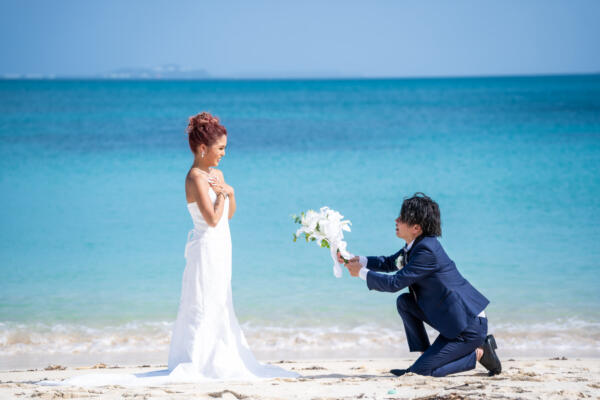 沖縄のビーチ、青い空や海を背景にお二人の輝く瞬間を記憶と共にかたちに残します。