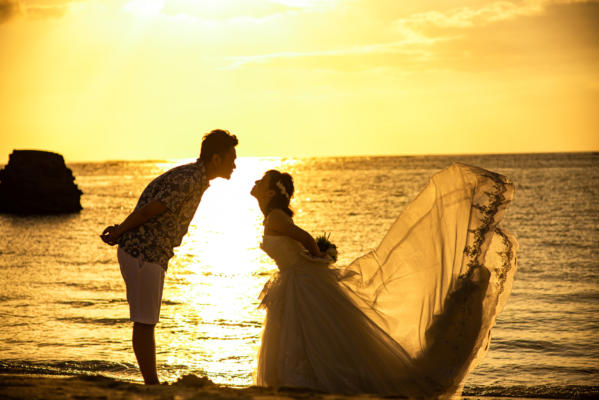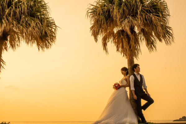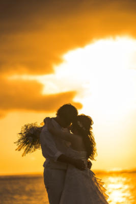 また、ロマンティックなサンセット撮影もオススメです。オレンジ色の世界観は非日常で幻想的。アラハビーチのワイルドなサンセットは日中での撮影とは全く違った雰囲気になります。