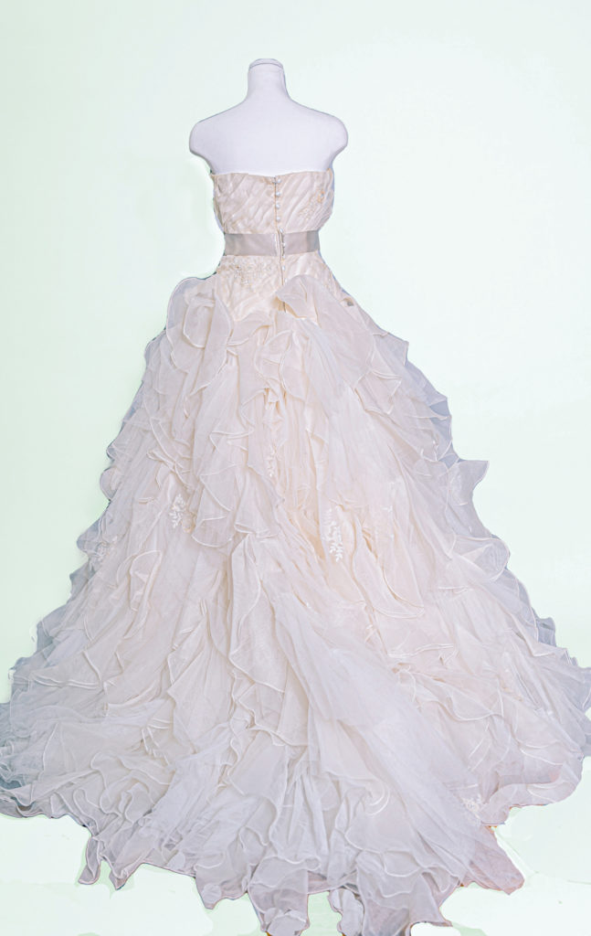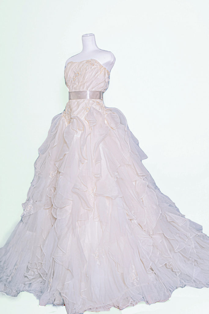 オフホワイトの色味が可愛らしいドレス。切り替え部分からはボリュームが溢れ綺麗で華やかな印象を与えます。