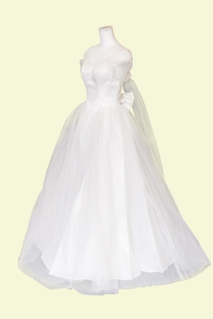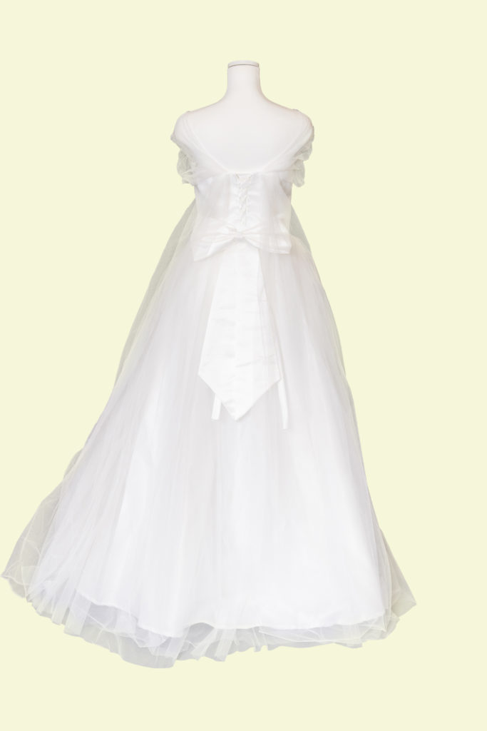 純白な色味でふんわりとしたレースが柔らかいイメージのドレス。